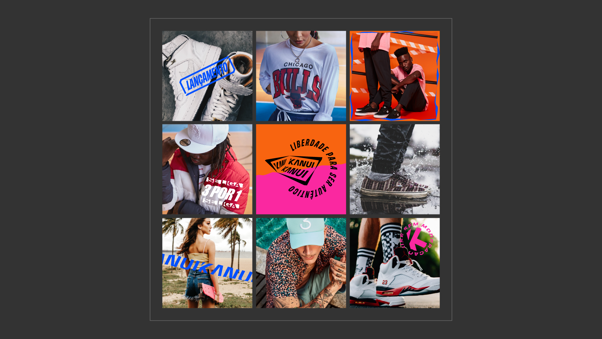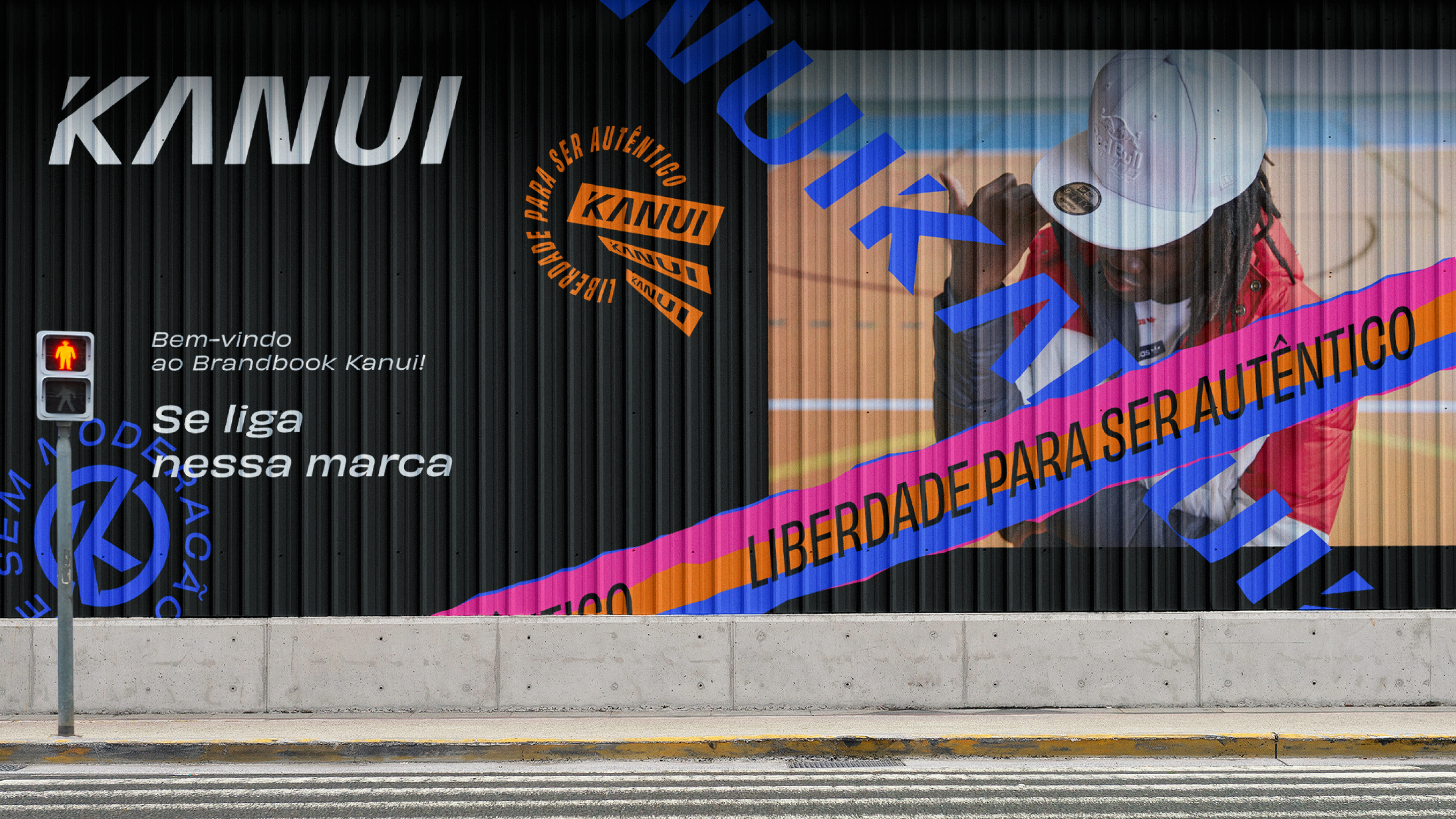 Para representar as sobreposições de identidades da Kanui, criamos o conceito de multiplicidade de camadas, com rasgos arrojados e irregulares, conferindo muito estilo.